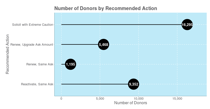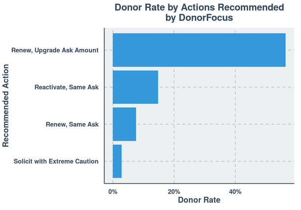 What I like to do is to take the donor scores that come out of this predictive modeling process and create plain English recommendations. I call my process ‘DonorFocus’, by the way.