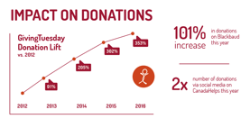The difference is not small: a recent analysis by Network for Good found that “Nonprofits who kicked-off year-end fundraising with #GivingTuesday raised, on average, 5x more overall during year-end.” The impact also isn’t driven entirely by the biggest players. In fact, the grassroots nature of GivingTuesday has leveled the playing field. Smaller organizations have the most to gain. In fact, 73% of GivingTuesday Canada partners are small to mid-sized charities.