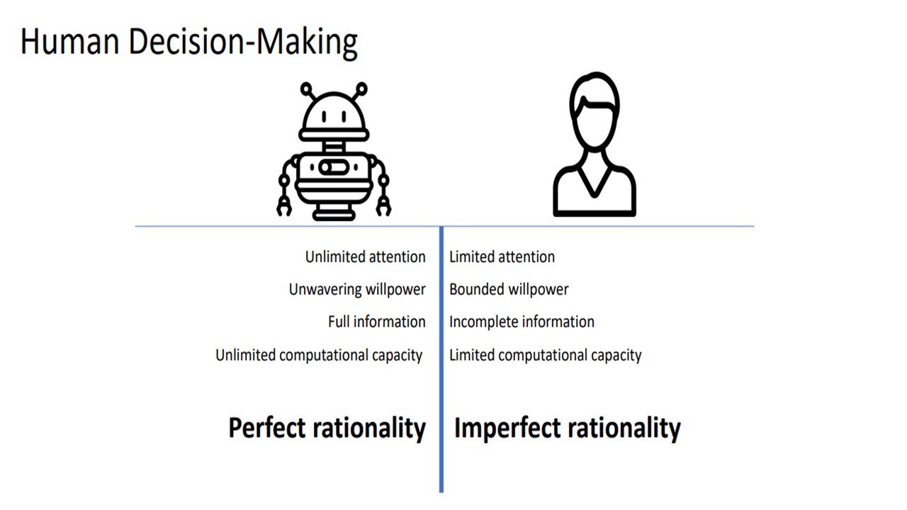 By using an evidence-based approach to decision making, you can shape actions in a positive way. This is because people are imperfectly rational. If you were perfect rational, you would have undivided attention, unwavering willpower, full information, and unlimited computational capacity. People have imperfect rationality because we have limited attention, wavering willpower, partial information, and limited computation capacity.