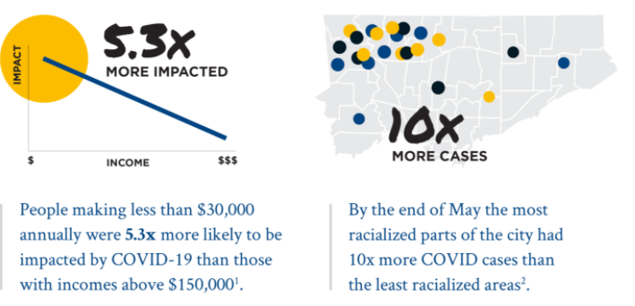 While COVID-19 rates were similar across neighbourhoods at the end of March 2020, by the end of May 2020, the most racialized parts of the city had 10 times more cases than the least racialized parts of the city.